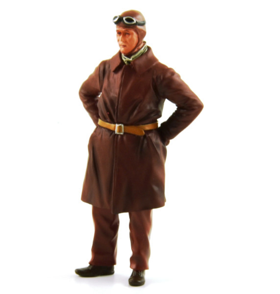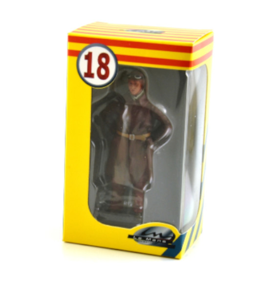 Cette figurine est représentative des années 1920 – 1930 ; les pilotes devaient se protéger des conditions climatiques pendant les courses d’autant plus que les voitures de compétition étaient souvent ouvertes. La première édition des 24 Heures du Mans s’est faite sous la pluie et dans la gadoue.