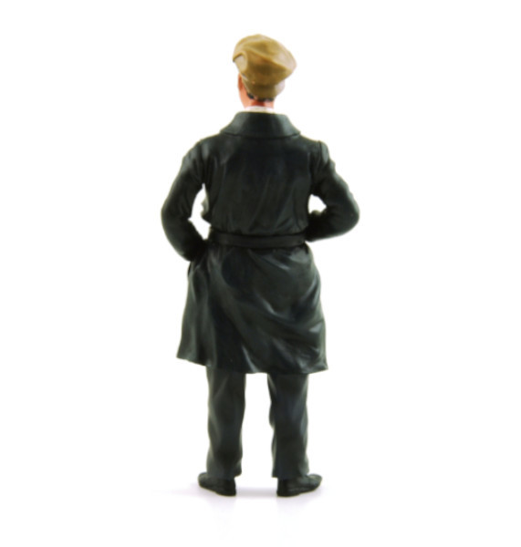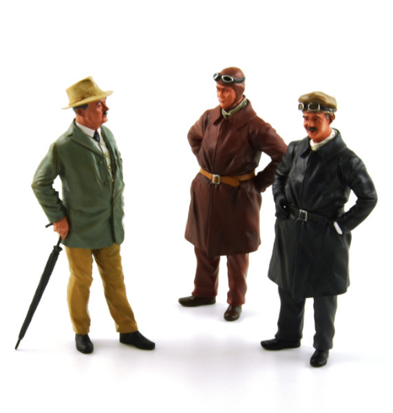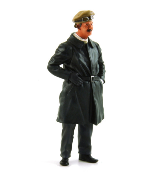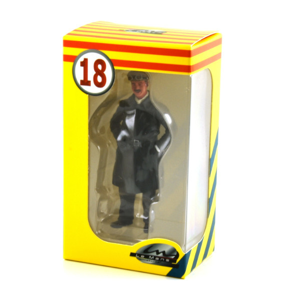 Pour se protéger des intempéries qui ont fait rage lors de la première édition des 24 Heures du Mans en 1923, la plupart des pilotes ont revêtu un manteau en gabardine ceinturé. Il porte sur sa casquette Gavroche les indispensables lunettes pour se protéger des projections de la pluie et des cailloux.