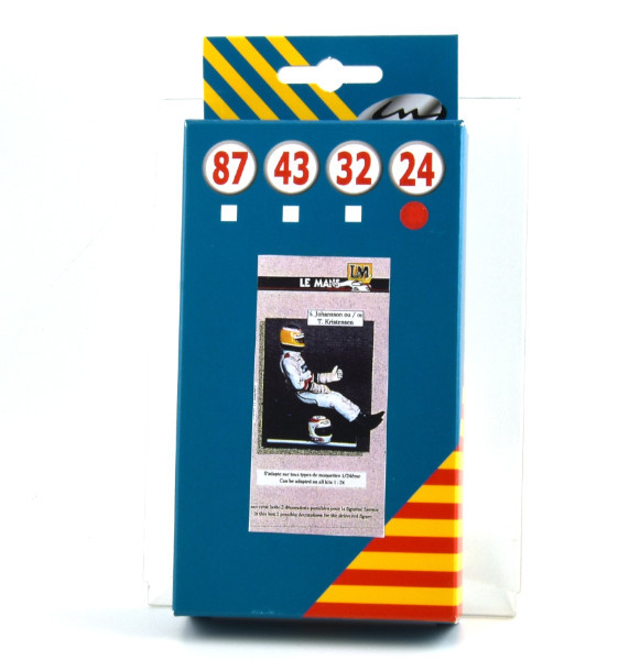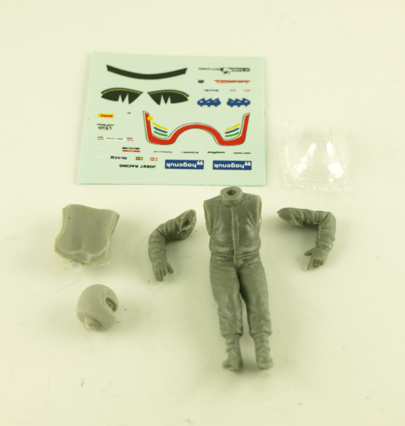 Figurine en résine à peindre et à décorer au 1/24ème d'un pilote assis. Avec le décalque, il est possible de décorer le casque de Tom Kristensen ou Davy Jones.