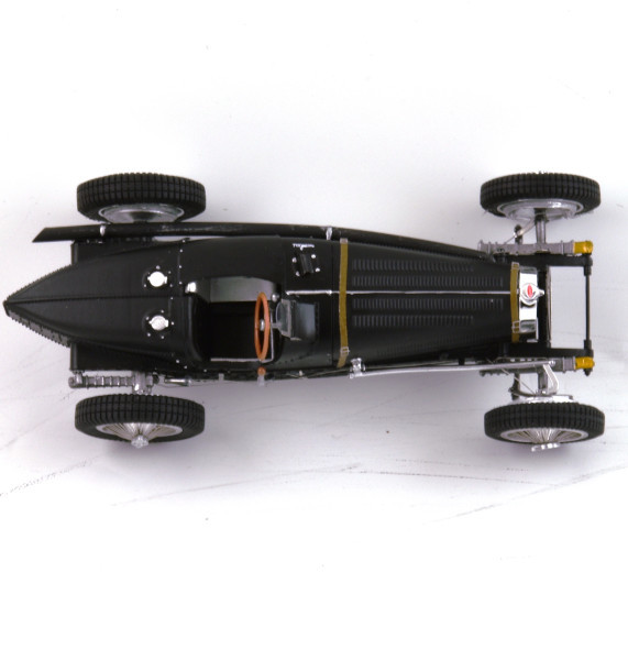 Cette type 59 Grand Prix châssis n°59124 est restée dans son jus et c'est sans doute l'exemplaire le mieux conservé avec le modèle noir restauré par le couturier designer Ralf Lauren. Nous avons reproduit le modèle tel que nous avons pu le voir à l'occasion du salon de Rétromobile en Février 2016.